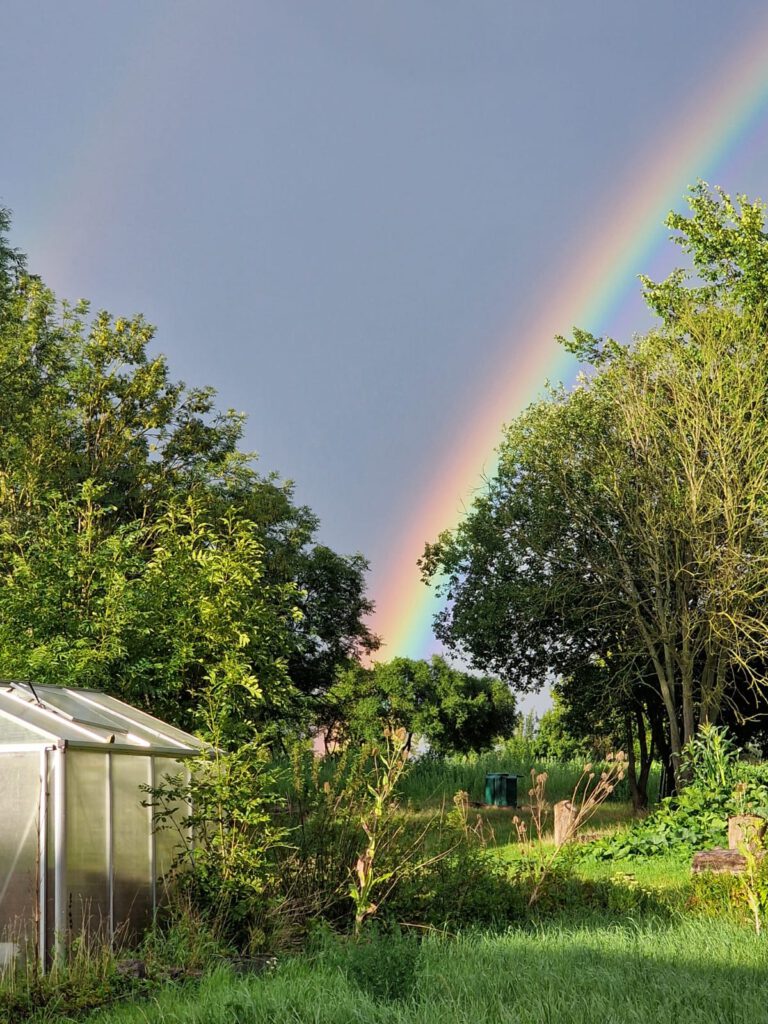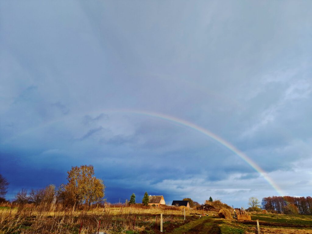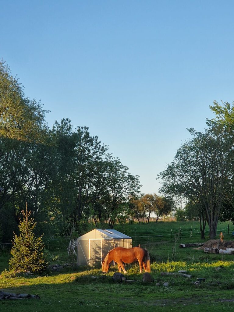 Der Hof ist auch der Ort von Julias landwirtschaftlichen Aktivitäten, die sie gemeinsam mit Arbeitspferden und zwei Hunden betreibt.